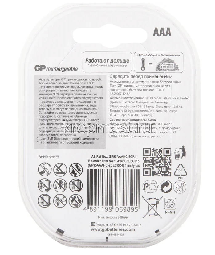 Батарейка Camelion Accu AAА аккумул. в интернет-магазине «Мастер Крепежа» по цене 316 руб. Более 8 наименований товаров в наличии в категории Батарейки для зарядных устройств / ЗУ . Купить батарейка camelion accu aaа аккумул. в Набережных Челнах выгодно Вы можете on-line на нашем сайте, или отправив заявку по почте, а также по телефону или в пункте выдачи компании г. Казань, ул. Татарстан, 9, магазин "Мастер Крепежа". Доставка по Республике Татарстан и другие регионы РФ.