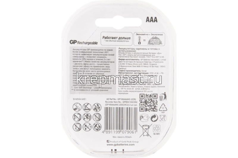 Батарейка GP Accu AAА аккумул. 1000ma в интернет-магазине «Мастер Крепежа» по цене 389 руб. Более 8 наименований товаров в наличии в категории Батарейки для зарядных устройств / ЗУ . Купить батарейка gp accu aaа аккумул. 1000ma в Набережных Челнах выгодно Вы можете on-line на нашем сайте, или отправив заявку по почте, а также по телефону или в пункте выдачи компании г. Казань, ул. Татарстан, 9, магазин "Мастер Крепежа". Доставка по Республике Татарстан и другие регионы РФ.