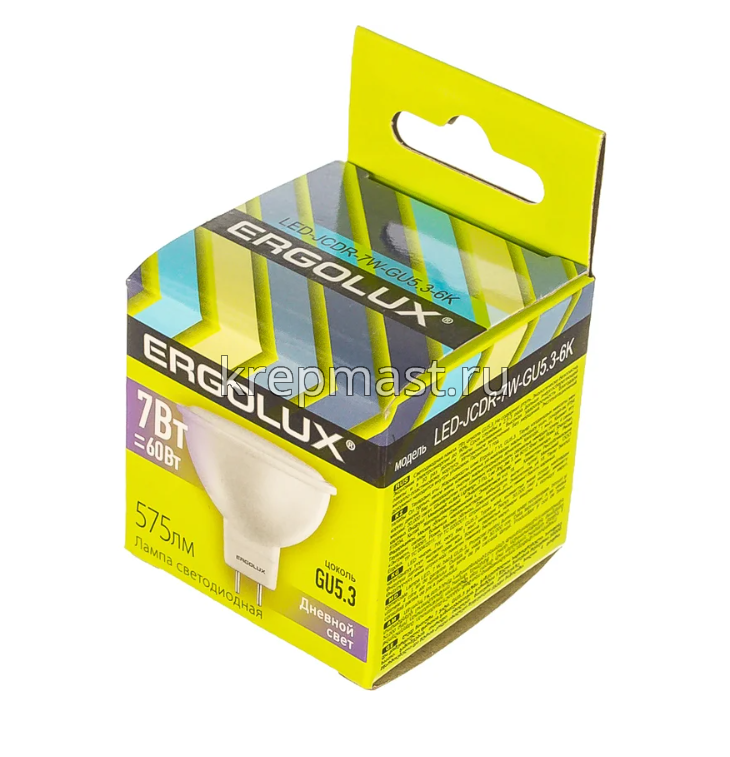 Лампа GU5.3 JCDR 7Вт 3000К - светодиодная лампа ERGOLUX может быть применена в жилых, офисных и производственных в помещениях, а также в уличных светильниках со степенью защиты не менее IP54.