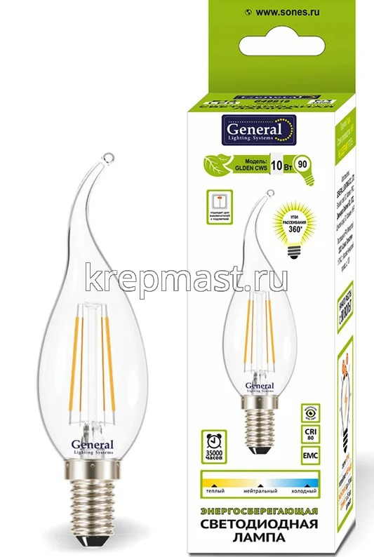 Лампа свеча на ветру 10Вт Е14 2700K GENERAL