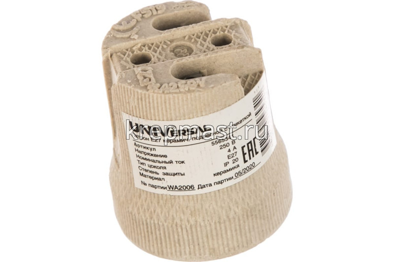 Патрон Е27 фарфоровый (рифленый) в интернет-магазине «Мастер Крепежа» по цене 24 руб. Более 9 наименований товаров в наличии в категории Патроны. Купить патрон е27 фарфоровый (рифленый) в Набережных Челнах выгодно Вы можете on-line на нашем сайте, или отправив заявку по почте, а также по телефону или в пункте выдачи компании г. Казань, ул. Татарстан, 9, магазин "Мастер Крепежа". Доставка по Республике Татарстан и другие регионы РФ.