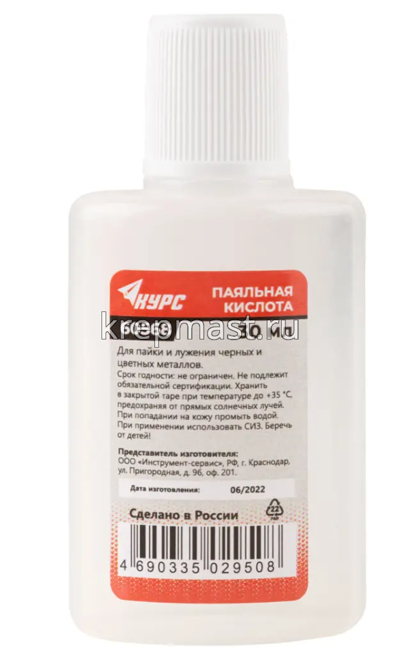 Кислота паяльная 30мл (высокоактивный флюс на основе хлористых солей цинка) в интернет-магазине «Мастер Крепежа» по цене 86 руб. Более 19 наименований товаров в наличии в категории Наборы для пайки. Купить кислота паяльная 30мл (высокоактивный флюс на основе хлористых солей цинка) в Набережных Челнах выгодно Вы можете on-line на нашем сайте, или отправив заявку по почте, а также по телефону или в пункте выдачи компании г. Казань, ул. Татарстан, 9, магазин "Мастер Крепежа". Доставка по Республике Татарстан и другие регионы РФ.