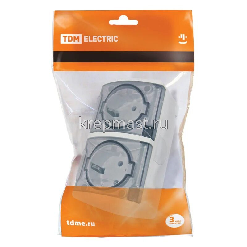 Розетка двухместная СЕЛИГЕР ОП белая с заземлением с крышкой IP54