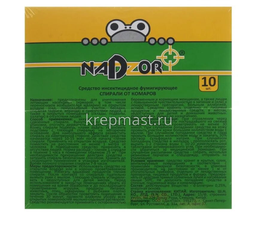 Спирали от комаров бездымные без запаха (уп.10шт) Nadzor - спирали от комаров предназначены для уничтожения летающих насекомых (комаров, в том числе переносчиков возбудителей малярии) на открытом воздухе (сад, приусадебный участок, беседка, открытая терраса, веранда) в присутствии людей, а также в закрытых помещениях (склады, подвалы, палатки) в отсутствии людей.