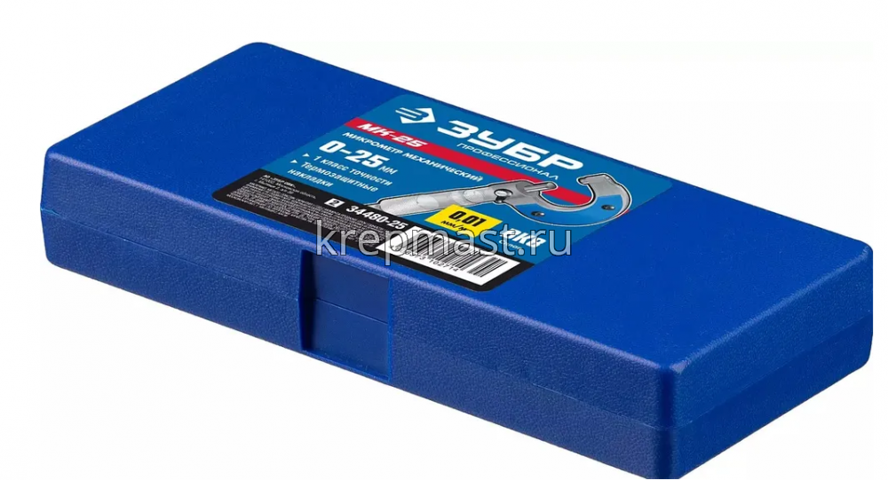 Микрометр Зубр "ЭКСПРЕСС" глад.мех. МК 25, диапазон 0-25мм шаг 0,01мм поставляется в прочном пластиковом кейсе. Инструмент обладает высокой точностью и позволяет определить внешние размеры любой детали. Работает в метрической системе измерений.