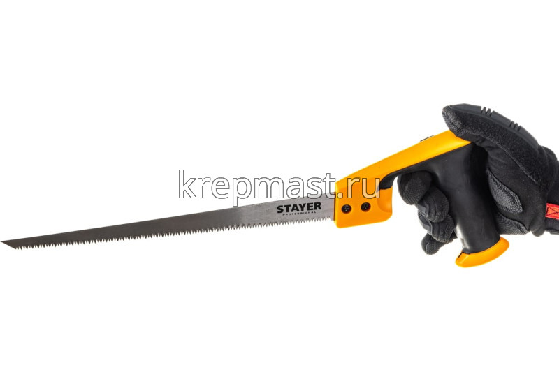 Ножовка выкружная (пила) Cobra COMPASS 300 мм с заточенным острием STAYER предназначена для точного и прямого распила заготовок из гипсокартона, дерева, пенобетона. Ножовка отличается узким заостренным полотном для выполнения фигурных пропилов в листовых материалах. Прямые мелкие зубья обеспечивают чистое и эффективное пиление.