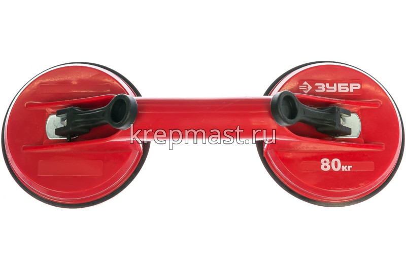 Двойной стеклодомкрат 80кг Зубр является простым и очень надежным приспособлением для захвата стекольных изделий при монтаже или транспортировке. Изделие имеет удобную, сбалансированную рукоятку. Основание не проскальзывает, оно выполнено из резины, имеющей специальный состав. Стеклодомкрат работает по вакуумному принципу.