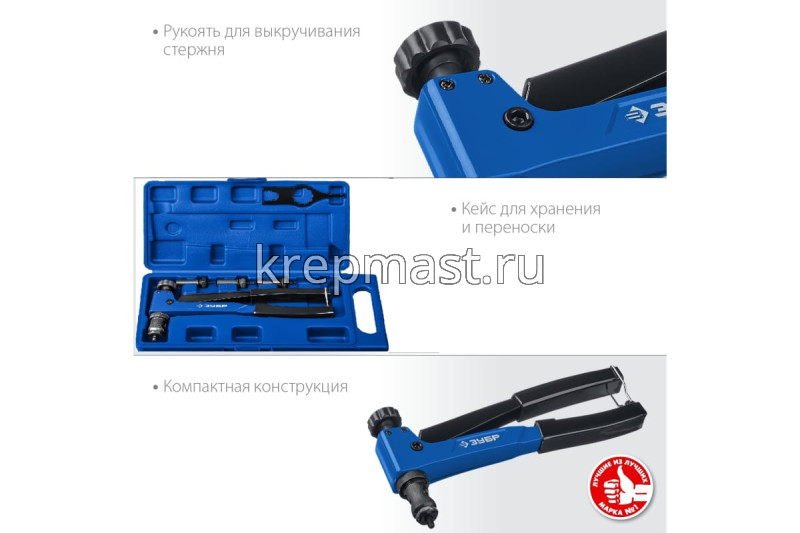 Заклепочник ЗУБР Р-М6 двуручный для резьбовых заклепок М3, М4, М5, М 6мм в Набережных Челнах