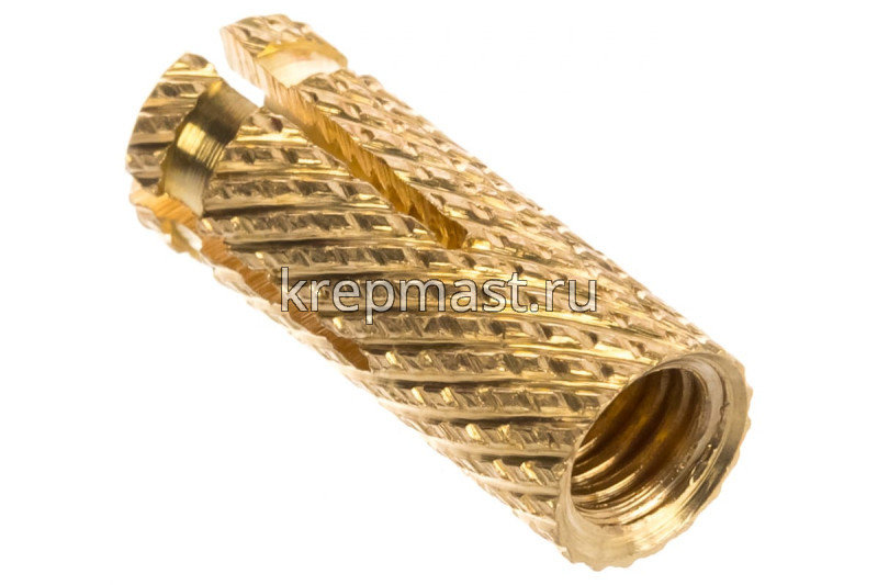 Анкер латунный цанга М 6 из-за своих отличных характеристик нашел свое применение практически во всех областях строительных и ремонтных работ. Цанга латунная М6 используется для крепления стеновых шкафов, реек, лаг.