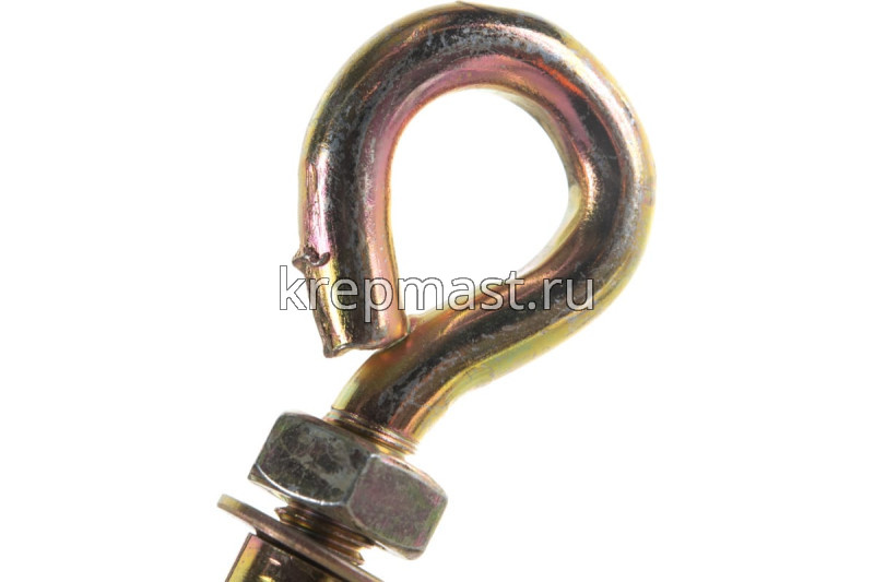 Анкерный болт с кольцом 10 х 60 является элементом крепежа для фиксации тяжелых подвесных конструкций, соединения с тросами и цепями.