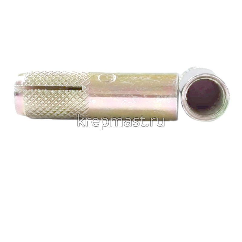 Забиваемый анкер М 10 применяется для крпеления конструкций к бетону, природному камню, кирпичу. Забивной анкер имеет внутреннюю резьбу и конусообразныый клин. Такой анкер расклинивается специальным инструментом.