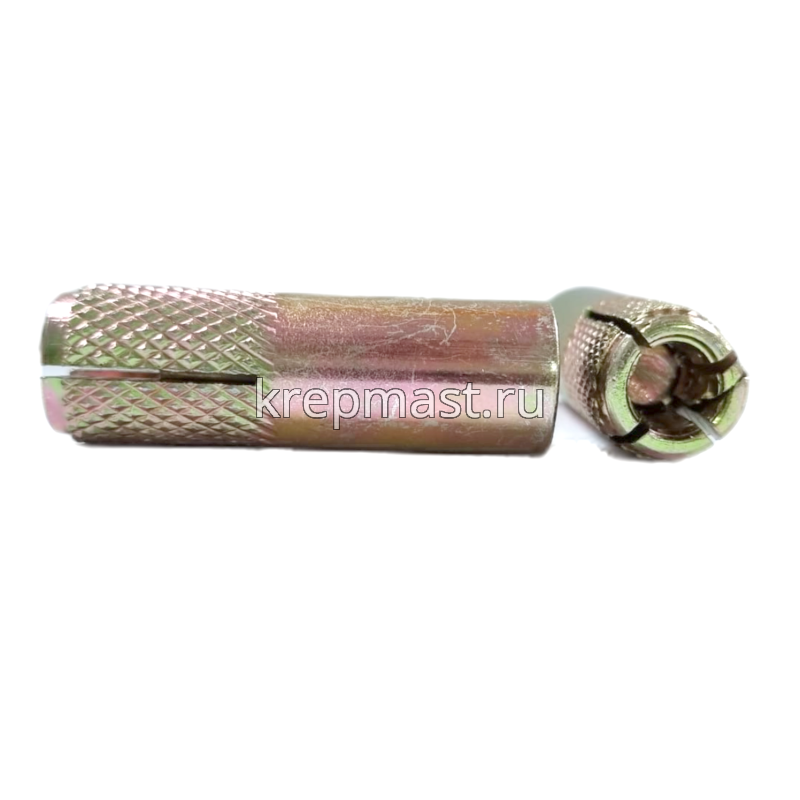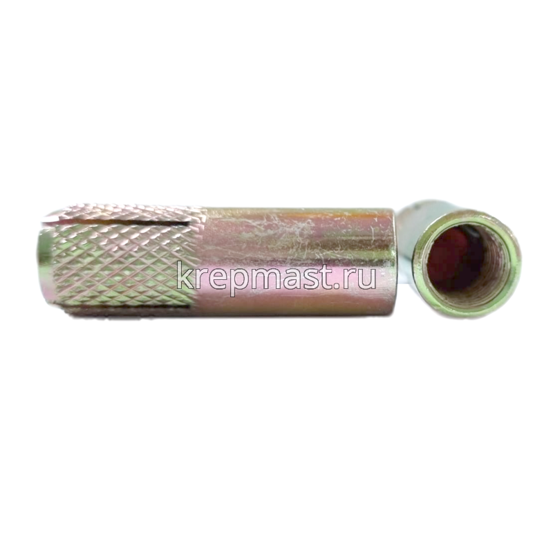 Забиваемый анкер М 12 применяется для крпеления конструкций к бетону, природному камню, кирпичу. Забивной анкер имеет внутреннюю резьбу и конусообразныый клин. Такой анкер расклинивается специальным инструментом.