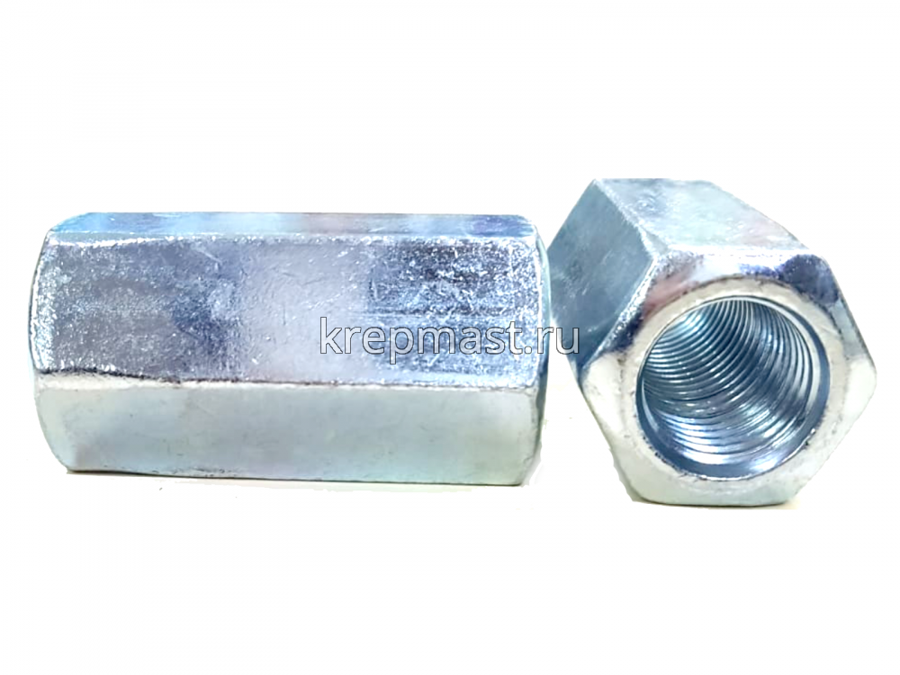 Соединительная гайка М24 DIN 6334 (шестигранная резьбовая муфта) применяется в качестве соединительного элемента при наращивании и удлинении резьбовых изделий: шпилек, болтов, анкеров с резьбой.