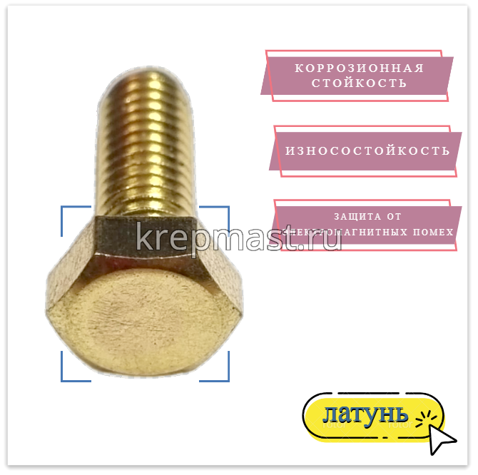 Болт 6х16 DIN 933 латунь в интернет-магазине «Мастер Крепежа» по цене 46 руб. Более 26 наименований товаров в наличии в категории Болты латунные DIN 933. Купить болт 6х16 din 933 латунь в Набережных Челнах выгодно Вы можете on-line на нашем сайте, или отправив заявку по почте, а также по телефону или в пункте выдачи компании г. Казань, ул. Татарстан, 9, магазин "Мастер Крепежа". Доставка по Республике Татарстан и другие регионы РФ.
