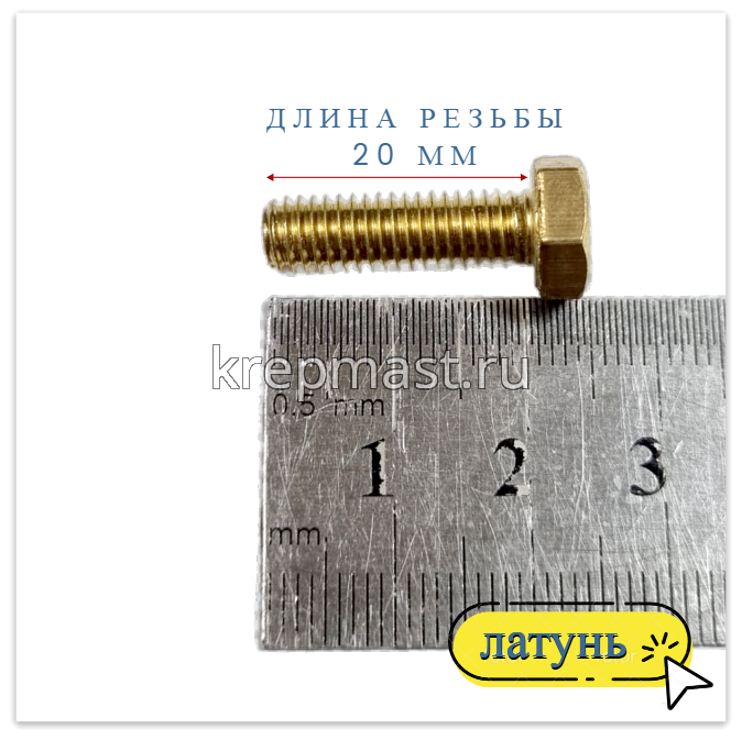 Болт 6х20 DIN 933 латунь в интернет-магазине «Мастер Крепежа» по цене 50 руб. Более 26 наименований товаров в наличии в категории Болты латунные DIN 933. Купить болт 6х20 din 933 латунь в Набережных Челнах выгодно Вы можете on-line на нашем сайте, или отправив заявку по почте, а также по телефону или в пункте выдачи компании г. Казань, ул. Татарстан, 9, магазин "Мастер Крепежа". Доставка по Республике Татарстан и другие регионы РФ.