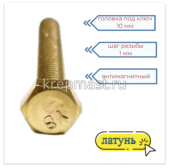 Латунный болт DIN 933 М6 х 40 используется в случае, когда необходимо создать немагнитный узел. Латунный болт М6 применяется в приборостроении, авиации, атомной промышленности. Латунный крепеж стоек к органическим кислотам и углекислым растворам.