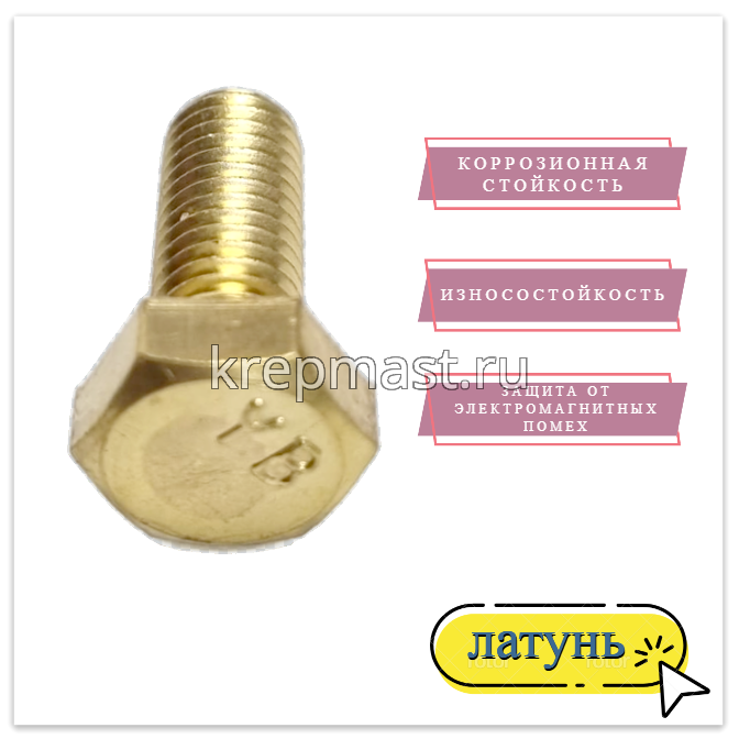 Болт 8х20 DIN 933 латунь в интернет-магазине «Мастер Крепежа» по цене 99 руб. Более 26 наименований товаров в наличии в категории Болты латунные DIN 933. Купить болт 8х20 din 933 латунь в Набережных Челнах выгодно Вы можете on-line на нашем сайте, или отправив заявку по почте, а также по телефону или в пункте выдачи компании г. Казань, ул. Татарстан, 9, магазин "Мастер Крепежа". Доставка по Республике Татарстан и другие регионы РФ.