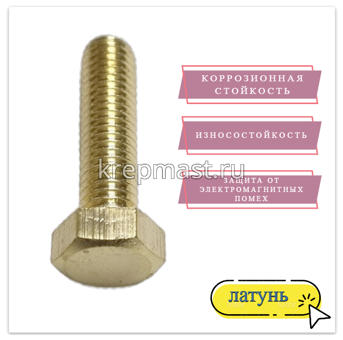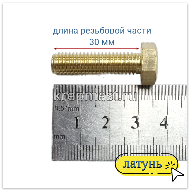 Болт 8х30 DIN 933 латунь в интернет-магазине «Мастер Крепежа» по цене 209 руб. Более 26 наименований товаров в наличии в категории Болты латунные DIN 933. Купить болт 8х30 din 933 латунь в Набережных Челнах выгодно Вы можете on-line на нашем сайте, или отправив заявку по почте, а также по телефону или в пункте выдачи компании г. Казань, ул. Татарстан, 9, магазин "Мастер Крепежа". Доставка по Республике Татарстан и другие регионы РФ.