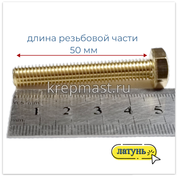 Болт 8х50 DIN 933 латунь в интернет-магазине «Мастер Крепежа» по цене 306 руб. Более 26 наименований товаров в наличии в категории Болты латунные DIN 933. Купить болт 8х50 din 933 латунь в Набережных Челнах выгодно Вы можете on-line на нашем сайте, или отправив заявку по почте, а также по телефону или в пункте выдачи компании г. Казань, ул. Татарстан, 9, магазин "Мастер Крепежа". Доставка по Республике Татарстан и другие регионы РФ.