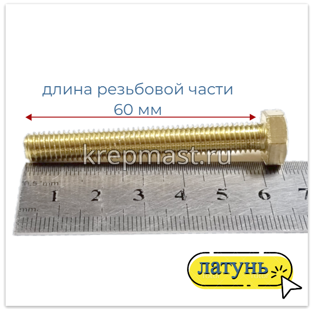 Болт 8х60 DIN 933 латунь в интернет-магазине «Мастер Крепежа» по цене 350 руб. Более 26 наименований товаров в наличии в категории Болты латунные DIN 933. Купить болт 8х60 din 933 латунь в Набережных Челнах выгодно Вы можете on-line на нашем сайте, или отправив заявку по почте, а также по телефону или в пункте выдачи компании г. Казань, ул. Татарстан, 9, магазин "Мастер Крепежа". Доставка по Республике Татарстан и другие регионы РФ.