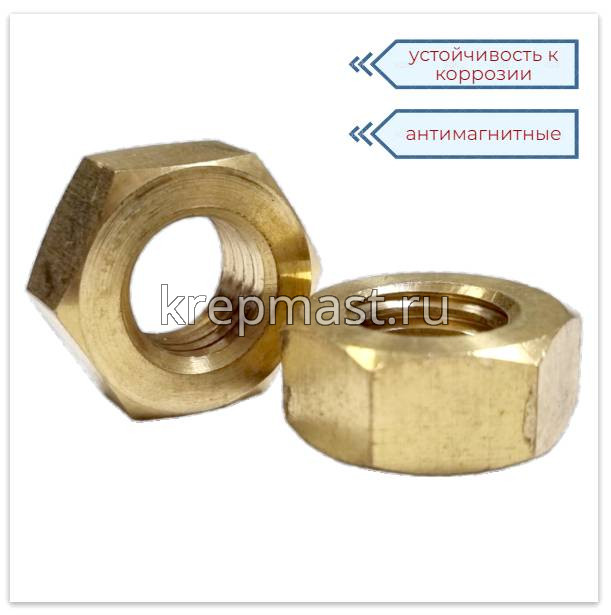 Гайка латунная не магнитится и служит для создания разъемных резьбовых соединений совместно с винтами, шпильками и болтами.