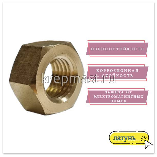 Гайка латунная не магнитится и служит для создания разъемных резьбовых соединений совместно с винтами, шпильками и болтами.