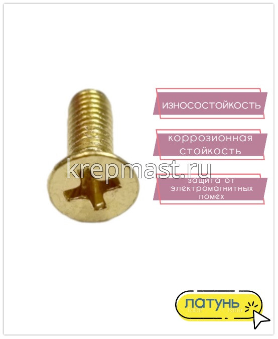 Винт потай 4,0 х12 DIN 965 латунь в Набережных Челнах