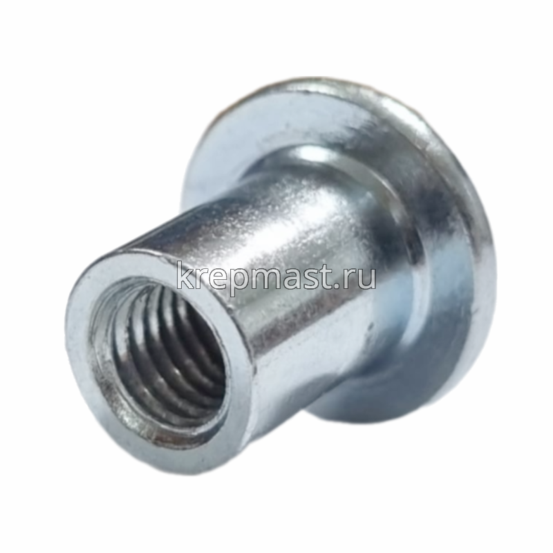 Гайка Эриксона с плоской головкой М6 (сталь) применяется с мебельными винтами для соединения, стяжки элементов и конструкций при производстве мебели.