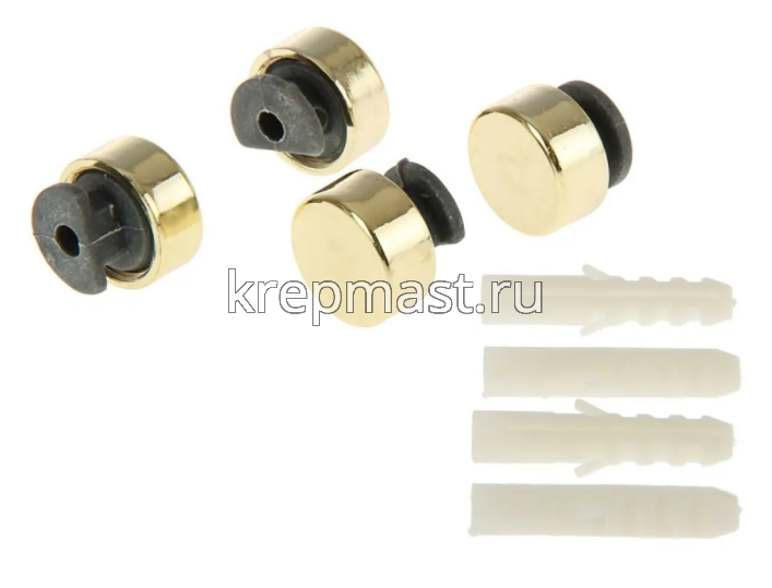 Набор держателей предназначен для монтажа зеркала 101-17 (золото) на стену в ванной. Крепления закрываются специальными пластиковыми накладками, что не портит интерьер.