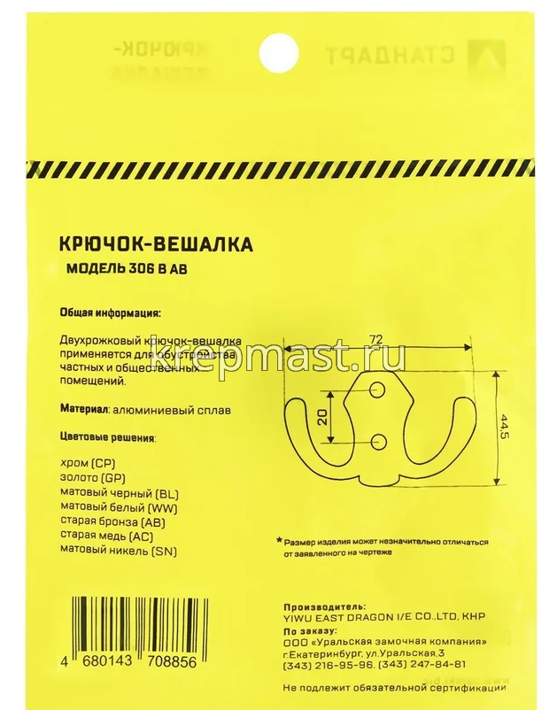 Крючок 306 В WW матовый белый СТАНДАРТ в интернет-магазине «Мастер Крепежа» по цене 120 руб. Более 12 наименований товаров в наличии в категории Крючок-вешалка. Купить крючок 306 в ww матовый белый стандарт в Набережных Челнах выгодно Вы можете on-line на нашем сайте, или отправив заявку по почте, а также по телефону или в пункте выдачи компании г. Казань, ул. Татарстан, 9, магазин "Мастер Крепежа". Доставка по Республике Татарстан и другие регионы РФ.