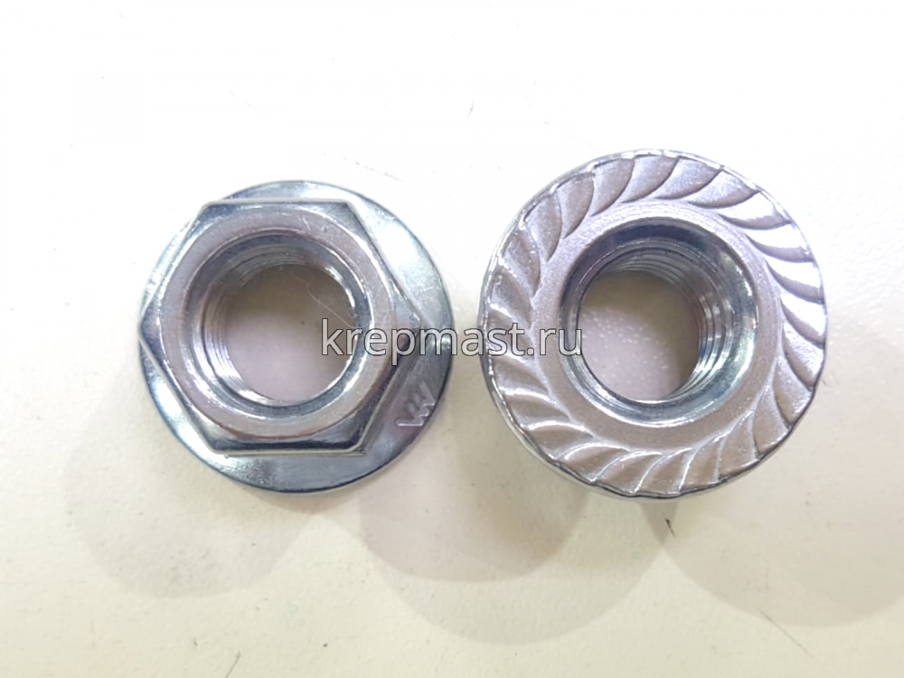 Нержавеющая гайка с фланцем М 12 DIN 6923 А2 крепежный элемент, совмещающий в себе шестигранную гайку с одной стороны и фланец (плоскую деталь круглой формы) — с другой. Другие названия этого метиза — гайка фланцевая, самостопорящаяся, с прессшайбой. Крепление производится с помощью гаечного ключа.