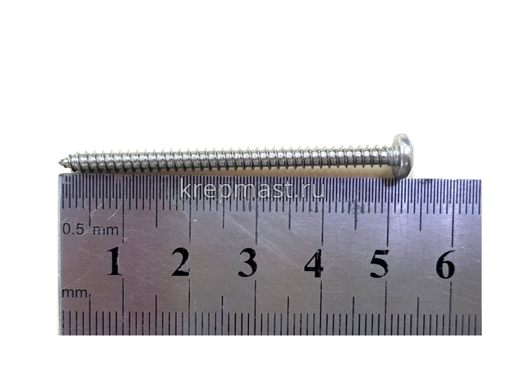 Саморез нержавеющий по металлу с полусферической головкой и острым концом DIN 7981 3.5 x 50 А2 применяется для крепления стальных и других листовых материалов (дерево, фанера) к металлическим и деревянным несущим конструкциям.
