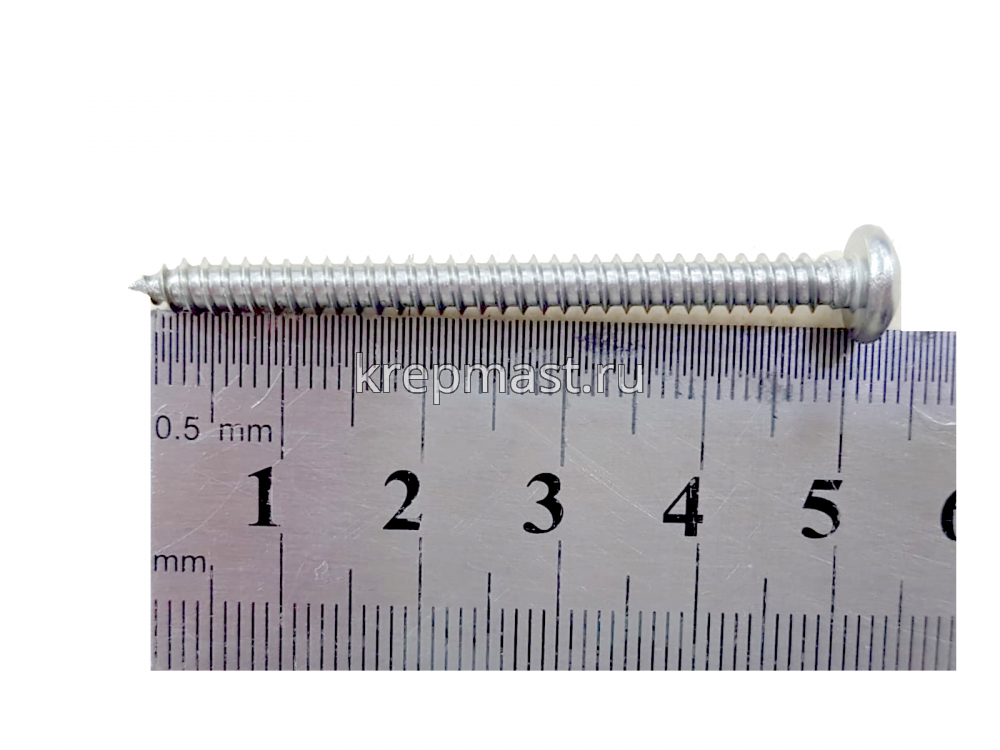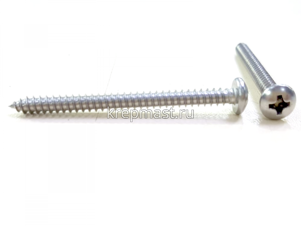 Саморез нержавеющий по металлу с полусферической головкой и острым концом DIN 7981 4.2 x 50 А2 применяется для крепления стальных и других листовых материалов (дерево, фанера) к металлическим и деревянным несущим конструкциям.
