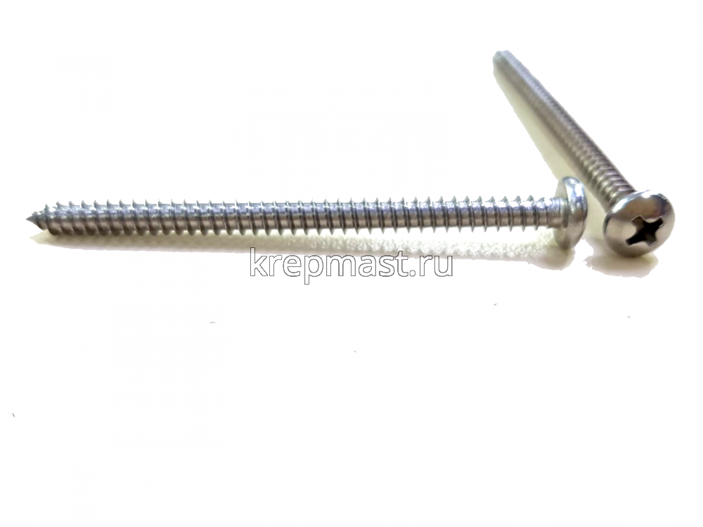 Саморез нержавеющий по металлу с полусферической головкой и острым концом DIN 7981 4.2 x 60 А2 применяется для крепления стальных и других листовых материалов (дерево, фанера) к металлическим и деревянным несущим конструкциям.