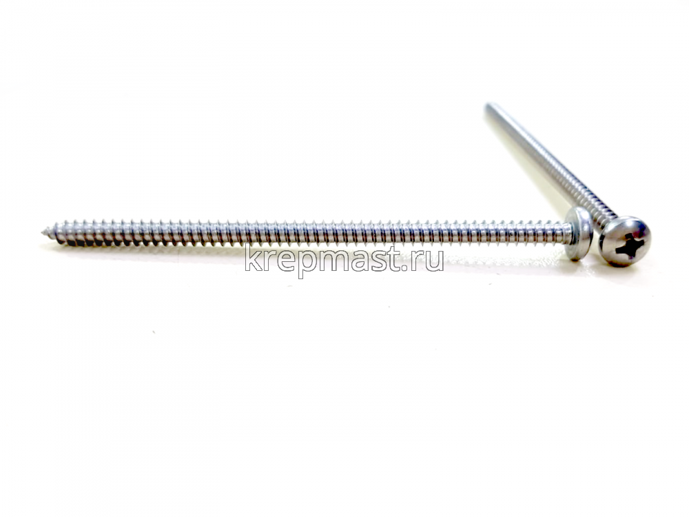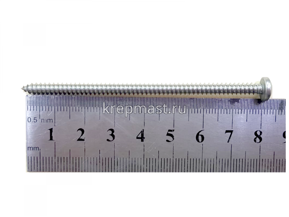 Саморез нержавеющий по металлу с полусферической головкой и острым концом DIN 7981 4.2 x 80 А2 применяется для крепления стальных и других листовых материалов (дерево, фанера) к металлическим и деревянным несущим конструкциям.