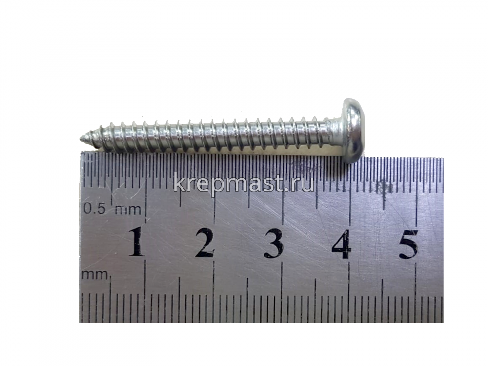Саморез нержавеющий по металлу с полусферической головкой и острым концом DIN 7981 4.8 x 38 А2 применяется для крепления стальных и других листовых материалов (дерево, фанера) к металлическим и деревянным несущим конструкциям.
