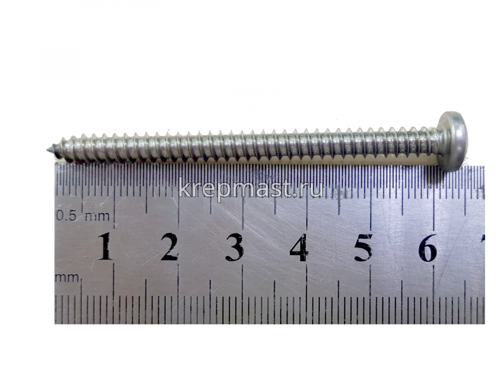Саморез нержавеющий по металлу с полусферической головкой и острым концом DIN 7981 4.8 x 60 А2 применяется для крепления стальных и других листовых материалов (дерево, фанера) к металлическим и деревянным несущим конструкциям.