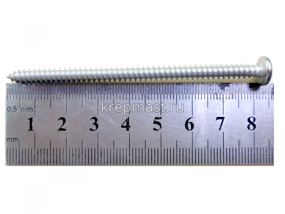 Саморез нержавеющий по металлу с полусферической головкой и острым концом DIN 7981 4.8 x 80 А2 применяется для крепления стальных и других листовых материалов (дерево, фанера) к металлическим и деревянным несущим конструкциям.