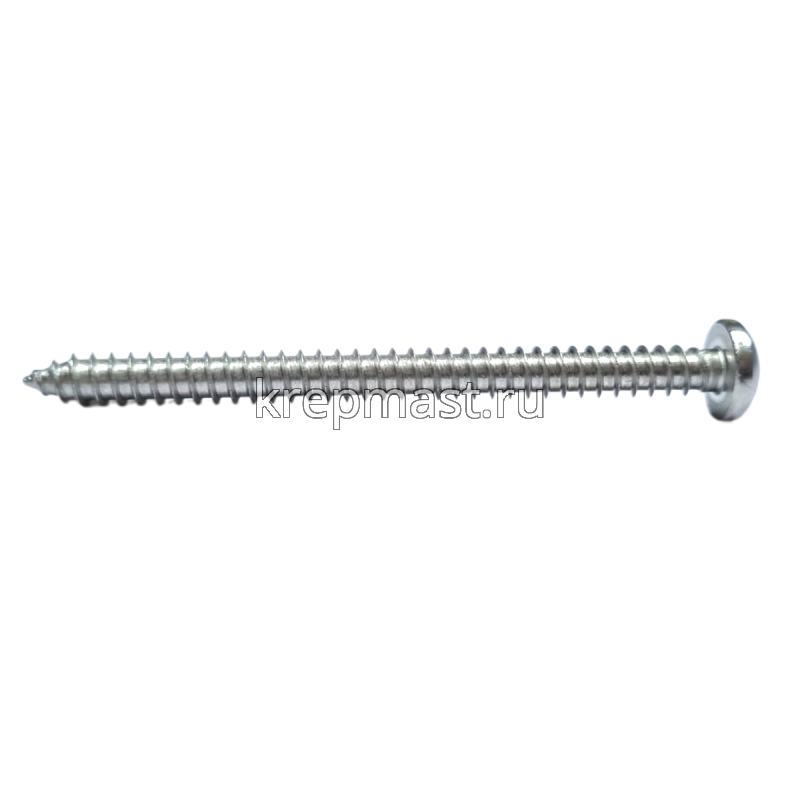 Саморез нержавеющий по металлу с полусферической головкой и острым концом DIN 7981 5.5 x 70 А2 применяется для крепления стальных и других листовых материалов (дерево, фанера) к металлическим и деревянным несущим конструкциям.