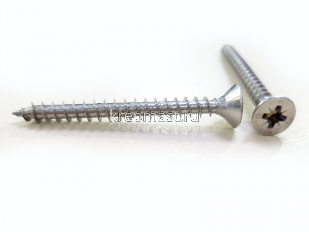 Саморез выполнен из нержавеющей стали, что позволяет использовать его в агрессивных средах. Нержавеющий шуруп практически не намагничивается.