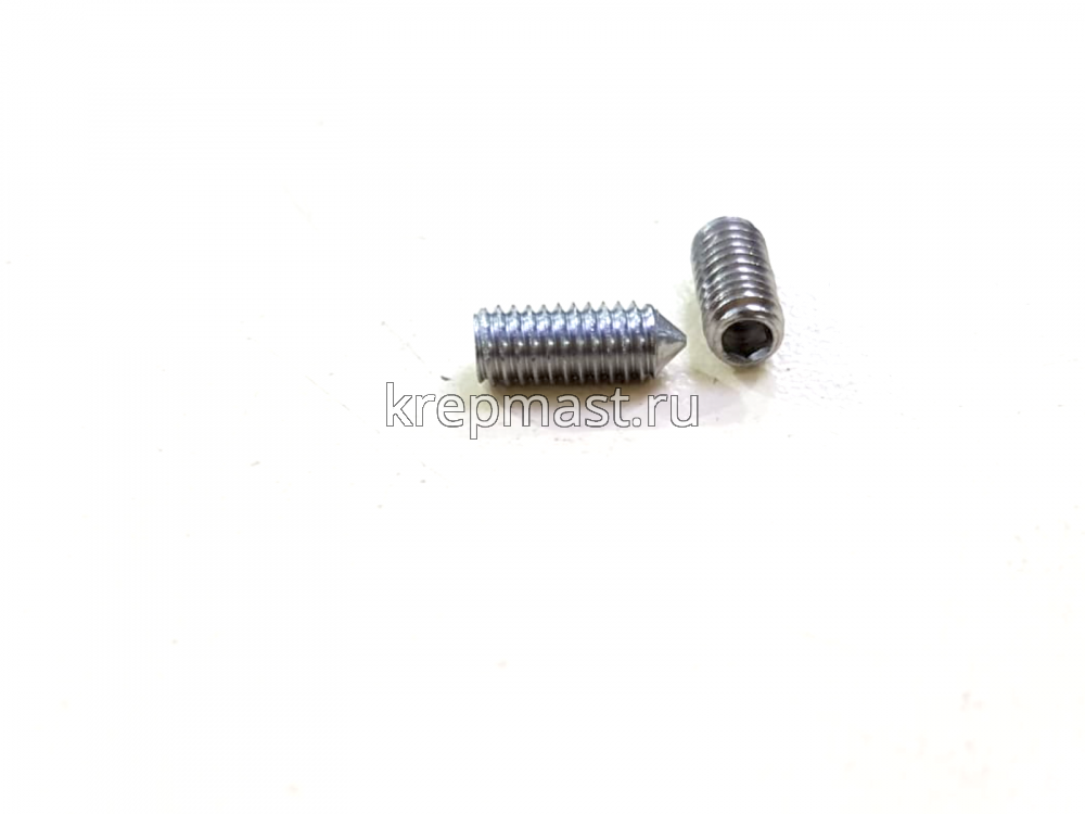 Винт нержавеющий установочный с внутренним шестигранником и заостренным концом DIN 914 4 х 10 А2 применяется для стопорения различных деталей между собой. Требуется предварительное сверление и нарезание резьбы диаметром 4 мм.