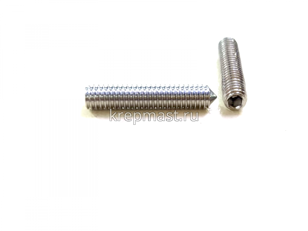 Винт нержавеющий установочный с внутренним шестигранником и заостренным концом DIN 914 4 х 20 А2 применяется для стопорения различных деталей между собой. Требуется предварительное сверление и нарезание резьбы диаметром 4 мм.