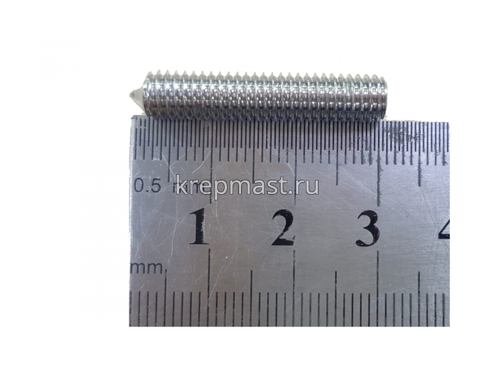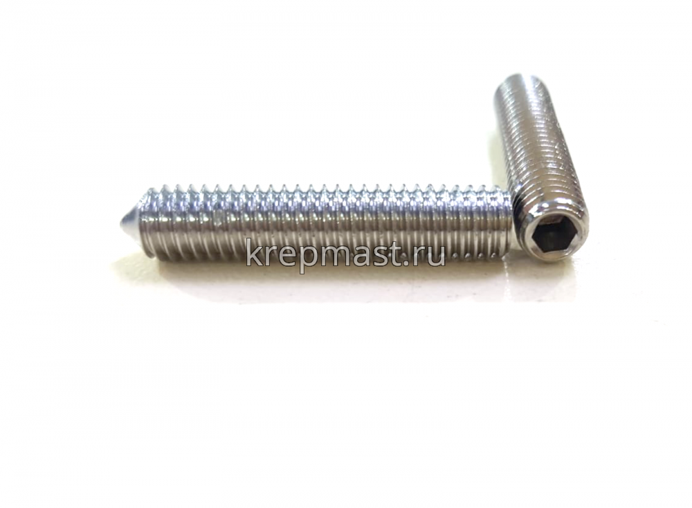 Винт нержавеющий установочный с внутренним шестигранником и заостренным концом DIN 914 6 х 30 А2 применяется для стопорения различных деталей между собой. Требуется предварительное сверление и нарезание резьбы диаметром 6 мм.