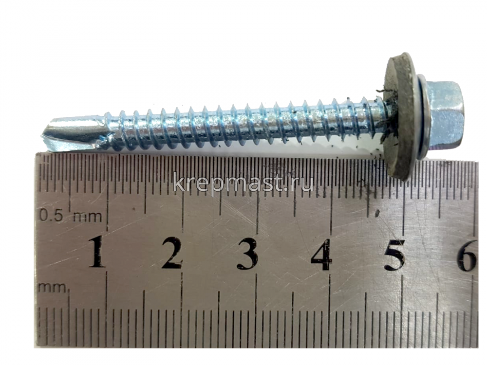 Кровельный саморез с шайбой и резиновой прокладкой EPDM DIN 7504 5,5 х 51 по металлу - представляет из себя саморез с шестигранной головкой, фланцем и резиновой прокладкой для эффективного прижатия листового металла к основанию.