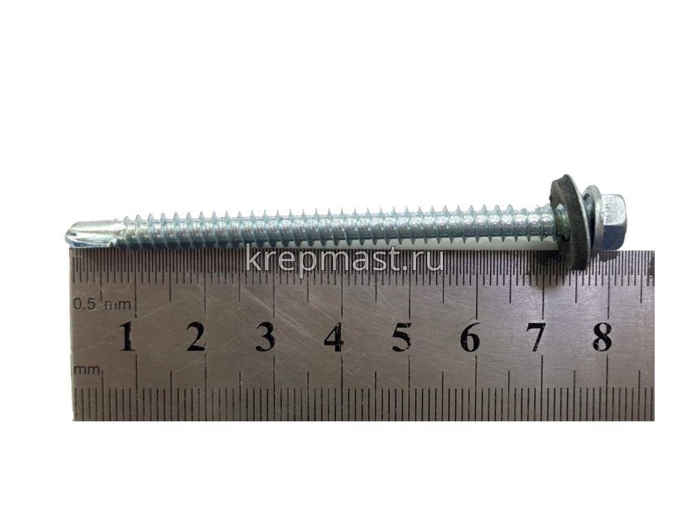 Кровельный саморез с шайбой и резиновой прокладкой EPDM DIN 7504 5,5 х 76 по металлу - представляет из себя саморез с шестигранной головкой, фланцем и резиновой прокладкой для эффективного прижатия листового металла к основанию.