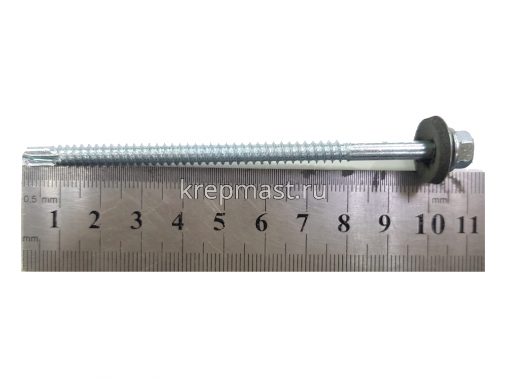 Кровельный саморез с шайбой и резиновой прокладкой EPDM DIN 7504 5,5 х 102 по металлу - представляет из себя саморез с шестигранной головкой, фланцем и резиновой прокладкой для эффективного прижатия листового металла к основанию.