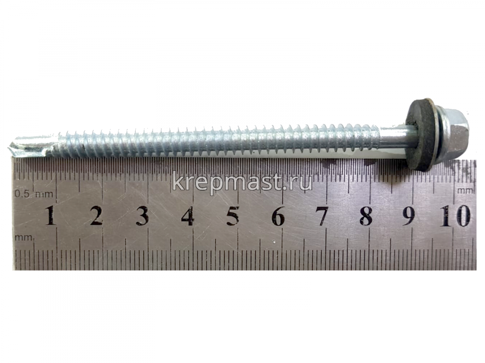 Кровельный саморез с шайбой и резиновой прокладкой EPDM DIN 7504 К 6,3 х 90 по металлу - представляет из себя саморез с шестигранной головкой, фланцем и резиновой прокладкой для эффективного прижатия листового металла к основанию.