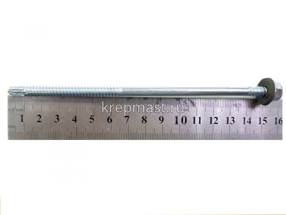 Кровельный саморез с шайбой и резиновой прокладкой EPDM DIN 7504 К 6,3 х 150 по металлу - представляет из себя саморез с шестигранной головкой, фланцем и резиновой прокладкой для эффективного прижатия листового металла к основанию.