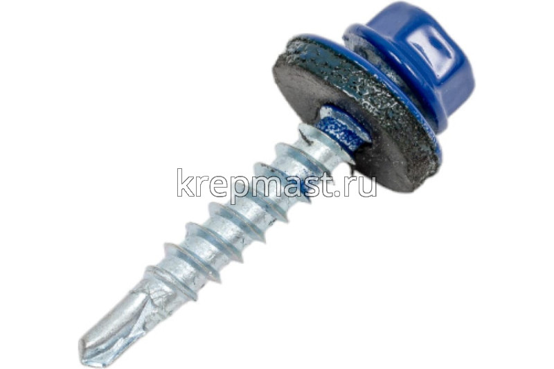 Кровельный саморез окрашенный с шайбой и резиновой прокладкой EPDM DIN 7504 4,8 х 29 по дереву RAL 5002 (цвет ультрамарин) - представляет из себя саморез с шестигранной головкой, фланцем и резиновой прокладкой для эффективного прижатия листового металла к основанию.