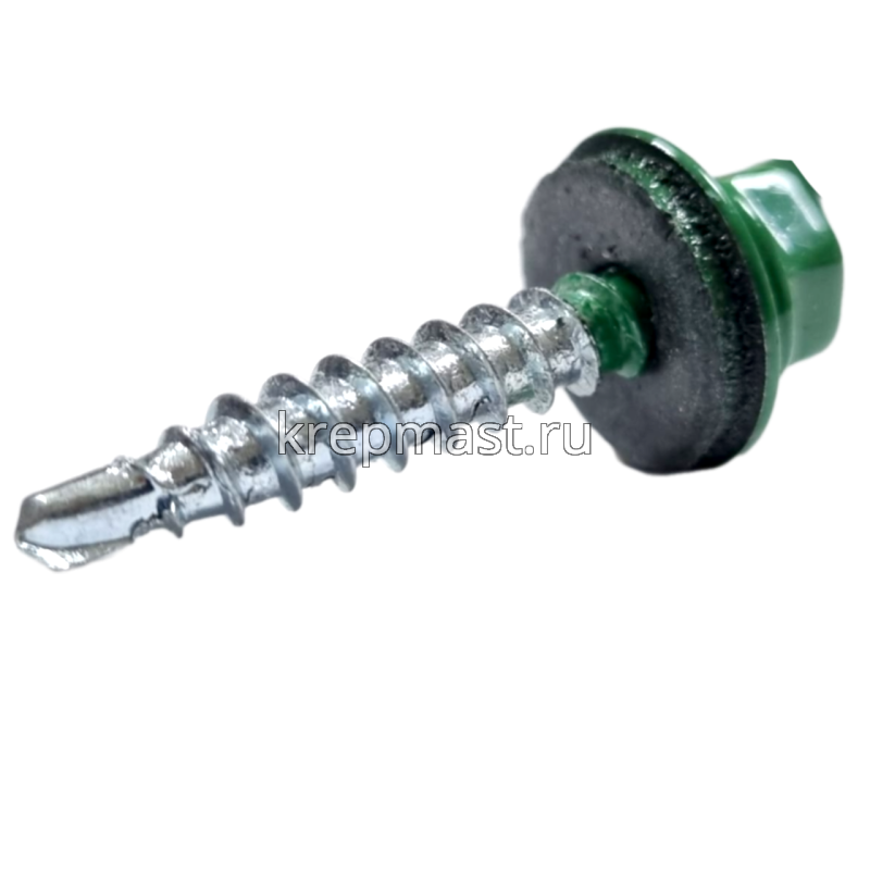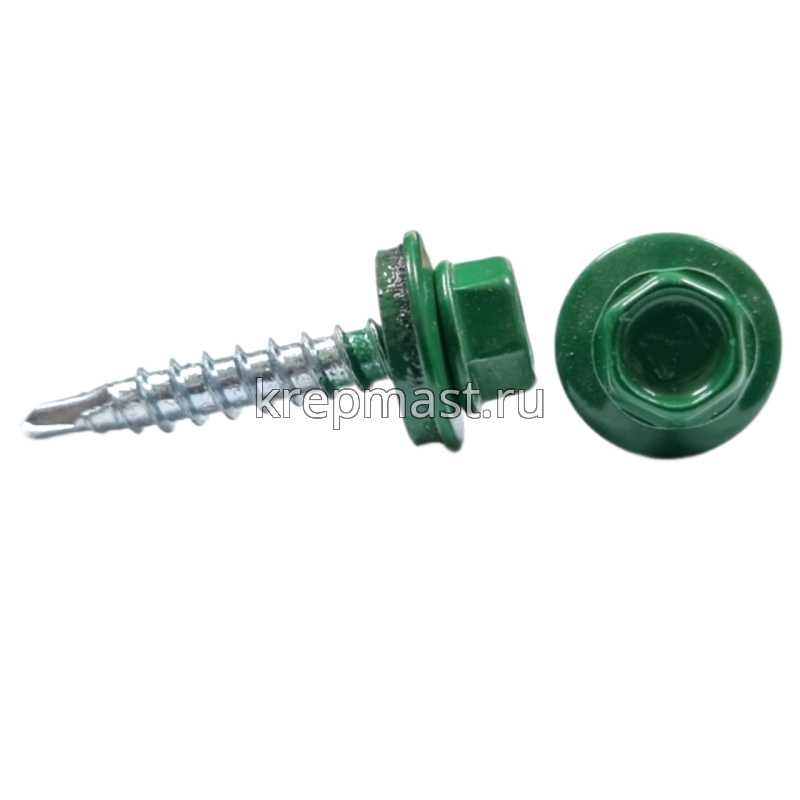 Кровельный саморез окрашенный с шайбой и резиновой прокладкой EPDM DIN 7504 4,8 х 29 по дереву RAL 6002 (цвет светло-зеленый) - представляет из себя саморез с шестигранной головкой, фланцем и резиновой прокладкой для эффективного прижатия листового металла к основанию.